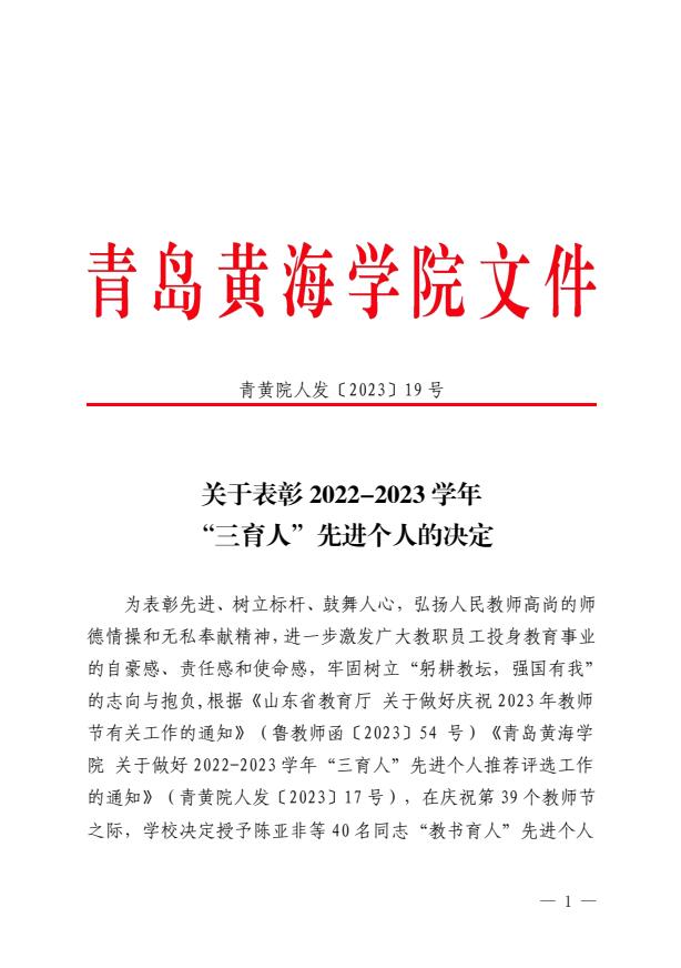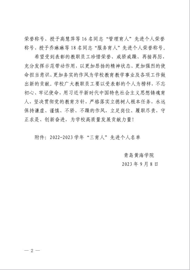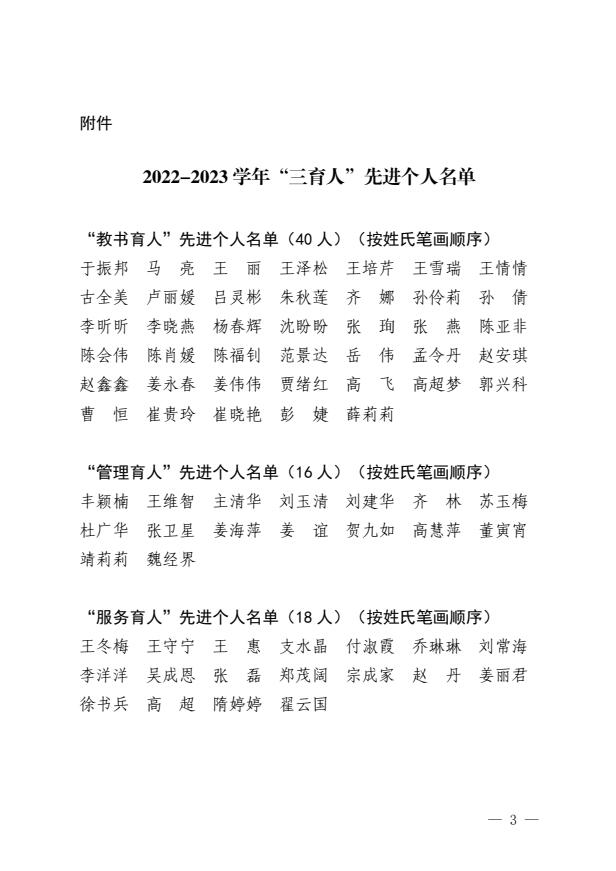 关于表彰2022-2023学年“三育人”先进个人的决定