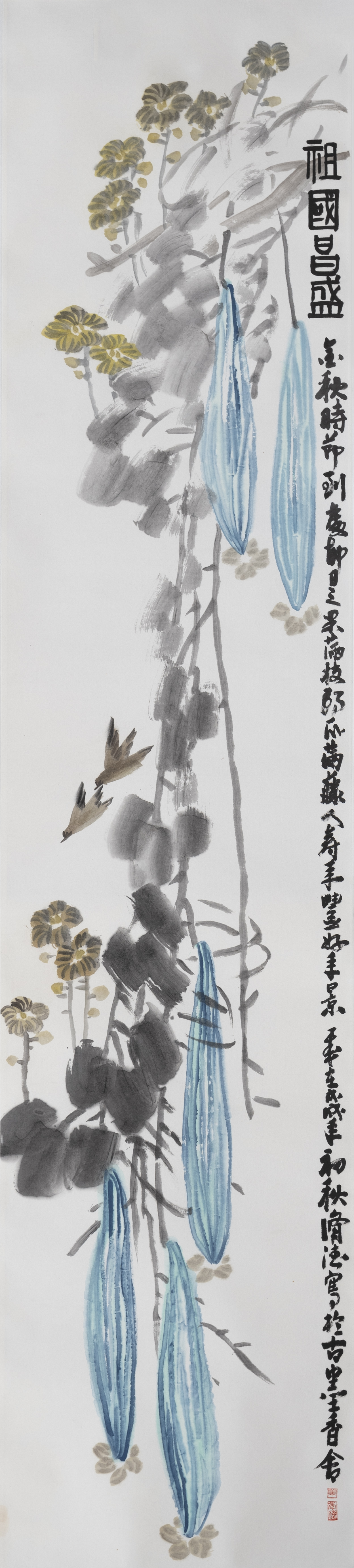 万修德+《丰收季节香满园》+中国画+240x54x4
