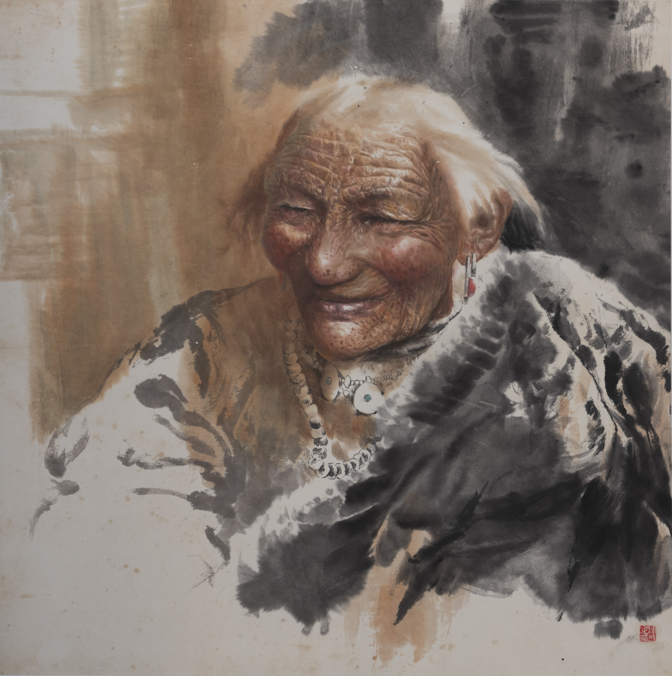 孙彤彤+《母亲》+中国画+65x65