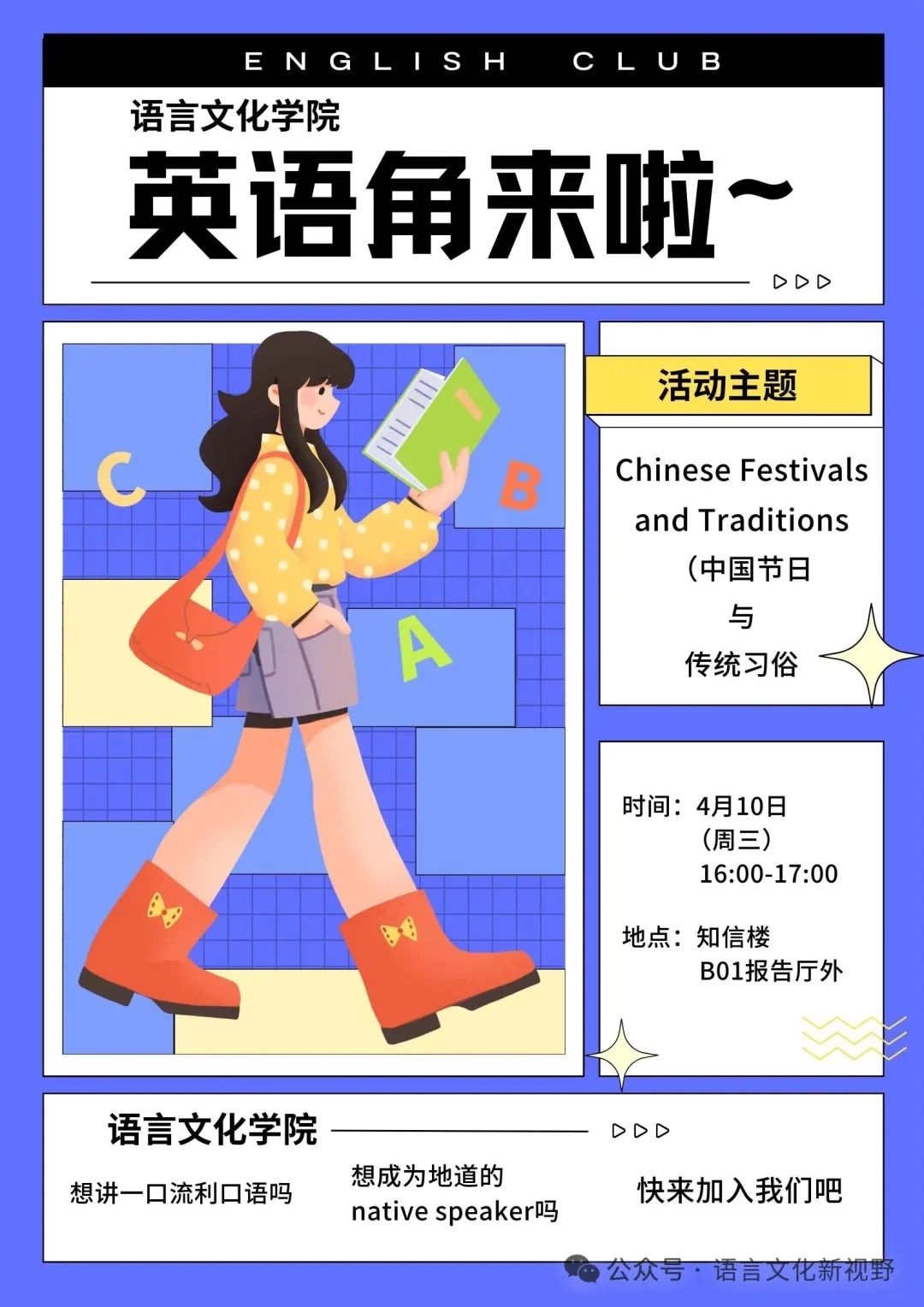 同学们,赶紧行动起来,带上你的热情与好奇心,来英语角与我们一起探索英语的无限魅力吧!