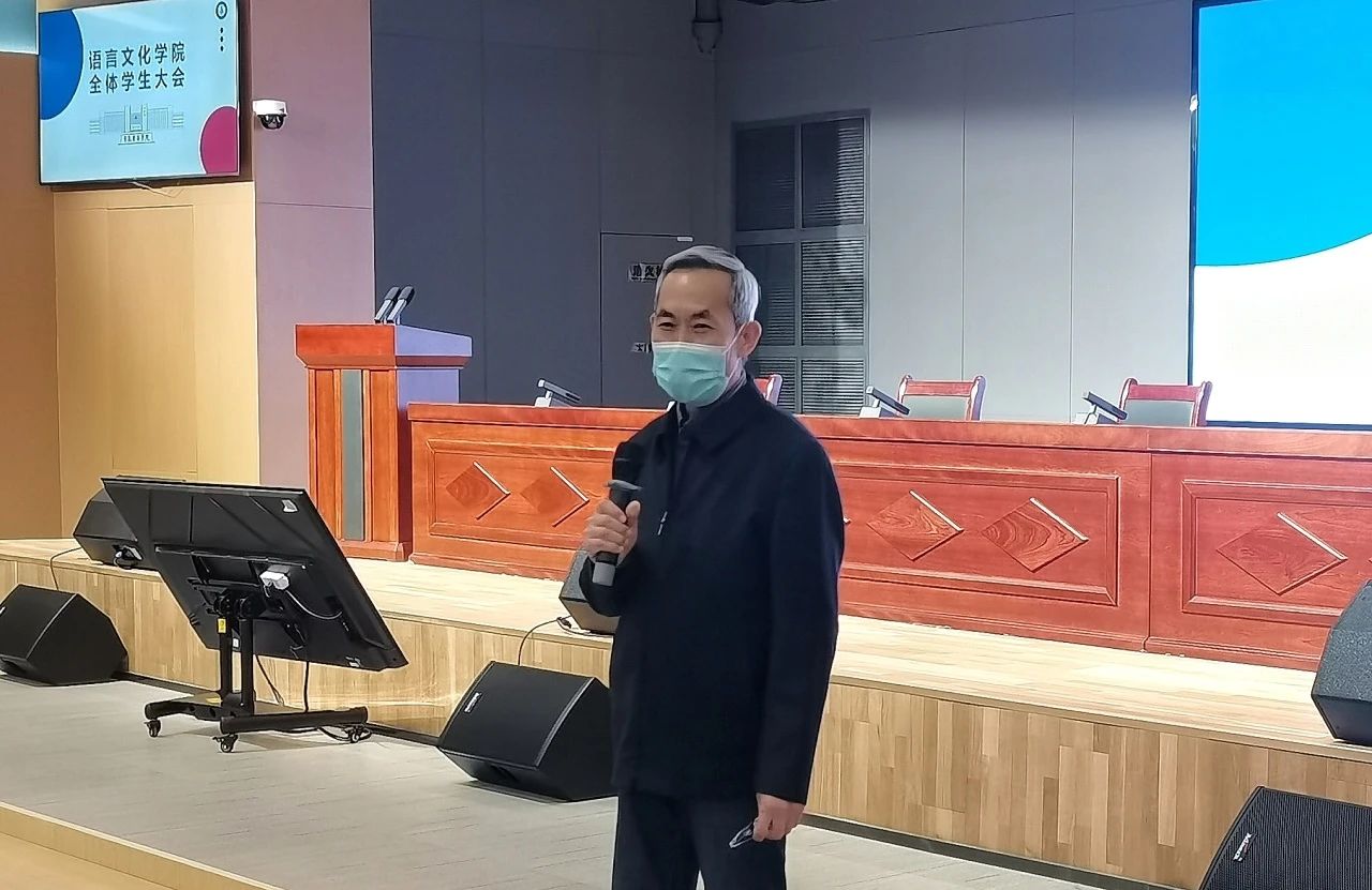 大会伊始,刘中富院长发表了热情洋溢的讲话。他强调,青春正是奋斗的好时光,语言文化学院的成立恰逢其时。虽然离开学生已近一年,但他仍希望能与新一代的同学们并肩前行,深入了解的生活。他提出四点希望,与全体师生共勉:一是要有精神气,坚持户外健身、阅读经典著作以及与师生交流;二是要积极参与学术讨论,关注生活感悟,与家长保持沟通;三是要培养自己的爱好,并将其转化为习惯;四是要具备情怀,既要有爱国情怀,又要关心家庭,同时在专业领域展现人文情怀。