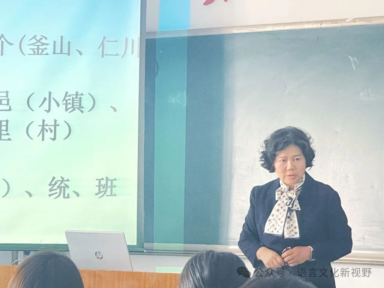 会上,朴英姬教授为老师们作主题讲座。通过现场教学,朴教授向在场老师现场教学韩国语的基本发音和日常问候用语。随后,朴教授详细介绍了韩国的自然地理、历史发展、行政区划等信息。朴教授还结合自身经验和现实案例,向参与此次讲座的老师们重点介绍了韩国海洋大学、韩国仁济大学博士研究生入学条件等信息,并为老师们提供了生动真实的案例。