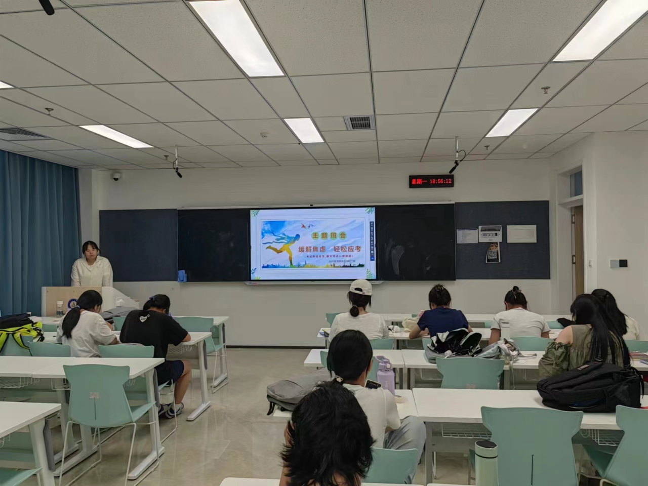 随着期末考试的脚步日益临近,学生们普遍面临较大的学习压力和焦虑情绪。为了帮助大家缓解焦虑,提高学习效率,语言文化学院的各位心理委员在本班特别组织了一场别开生面的心理主题团课——“缓解焦虑,轻松应考”。