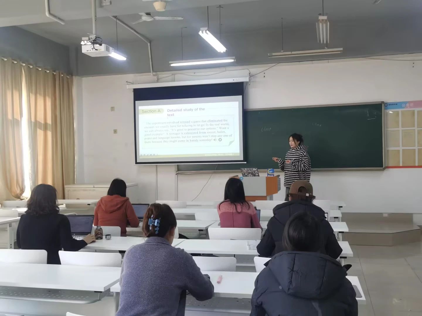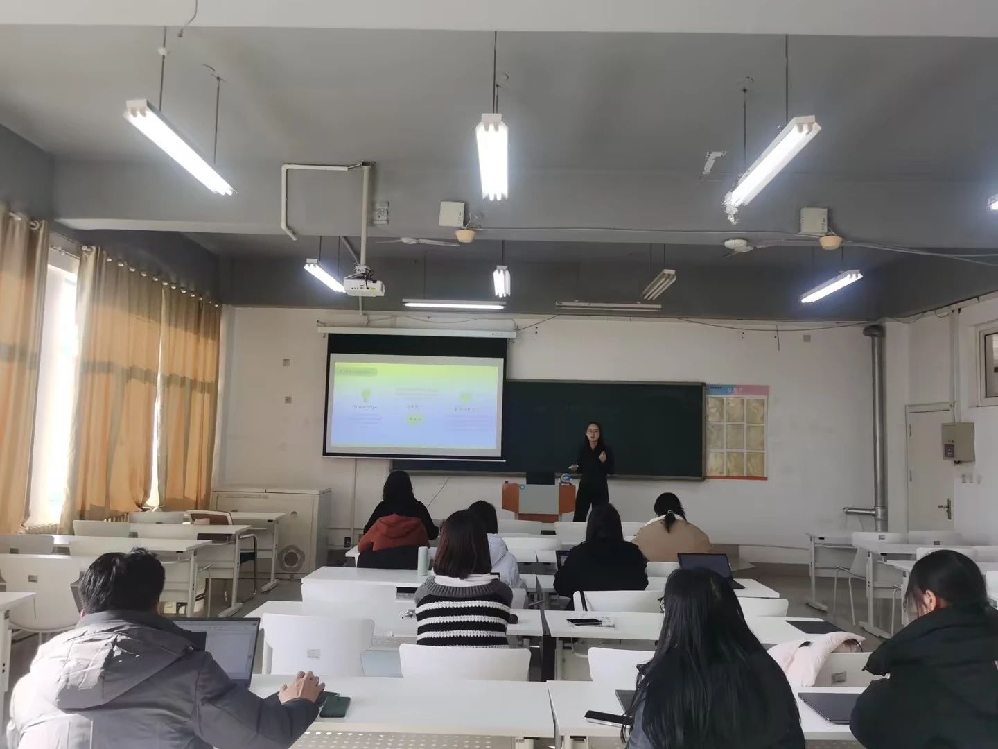2024年12月31日,语言文化学院大学英语教学部在知诚楼415教室成功举办了新入职教师年终考核教学比赛。此次活动旨在展示新入职大学英语教学部教师的教学智慧,提升教学质量,同时为一线教师的教学能力提升提供引领。