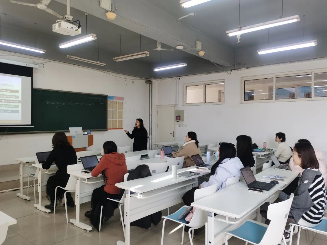 陈阳老师首先登场,她以“达到财务健康”为主题,通过生动的实例和有趣的互动,引导学生们开口说英语,沉浸式体验如何追求财务健康。授课语言流畅,环节合理,课堂活动设计丰富,教学设计结构清晰、逻辑严谨。老师们既讲解专业知识,又启迪学生做人做事的人生道理,把思想政治教育的内涵潜移默化融入到课堂教学中,生动体现了知识传授和课堂讲授的统一性,展现了各具特色的教学设计和教学风采。
