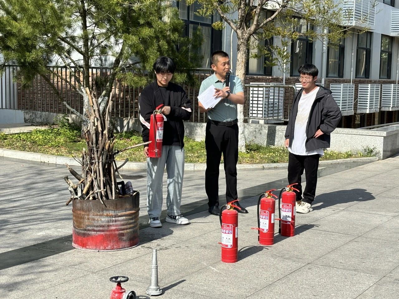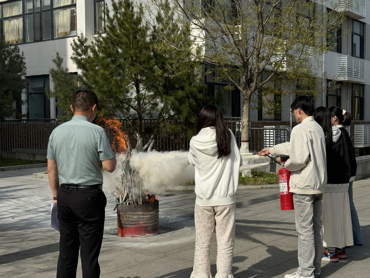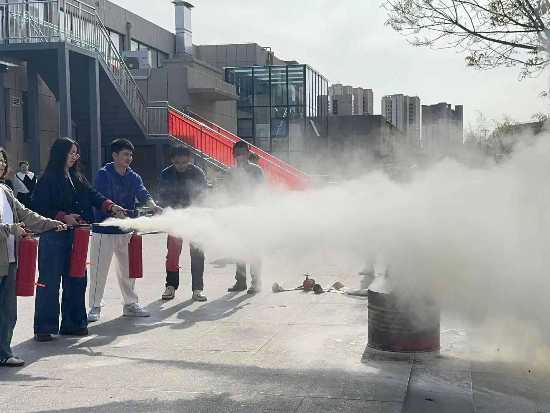 随后,老师重点讲解了灭火器和消防栓的正确使用方法。对于灭火器,老师从类型识别、适用火灾、使用前检查到“四步操作法”(提、拔、握、压)进行了详细讲解和示范。对于消防栓,老师说明了其组成、开启方式及水带、水枪的连接方法,并现场演示了水枪的喷射角度和距离控制技巧。