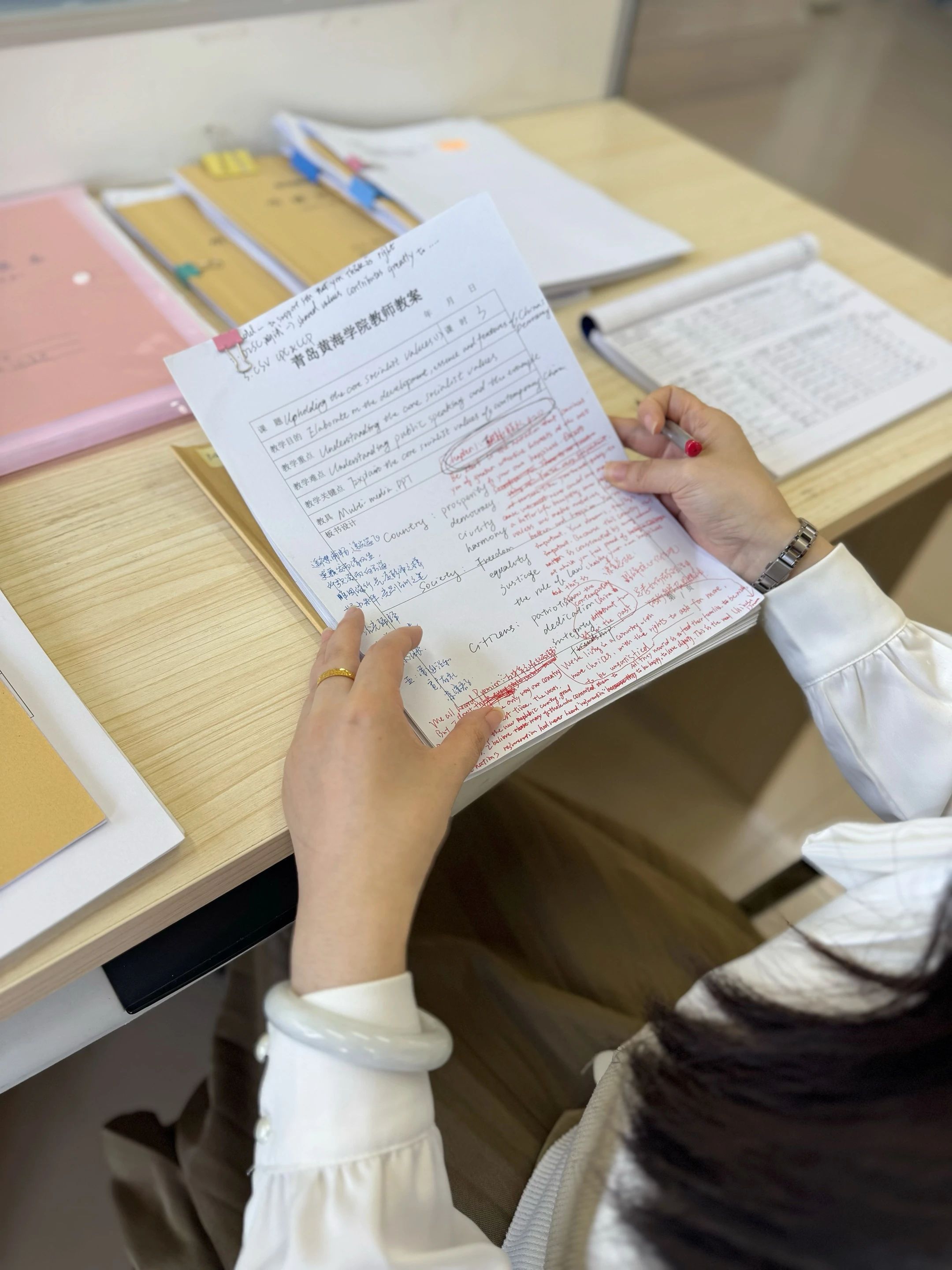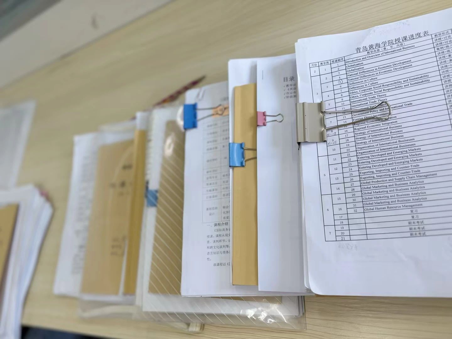 英语系于4月23日上午9点至11点开展了期中教学材料检查。英语系主任崔晓雷,以及课程负责人曹海洋、郭蕾、姜怡菲老师对所有年级的本科及专升本课程的教学材料进行了检查和记录。