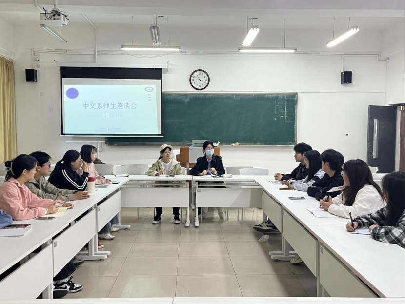 为促进师生交流,倾听学生心声,了解前半学期教与学的基本情况,推动中文系教育教学高质量发展,中文系于4月25日在知诚楼105教室举办期中师生座谈会。会议由中文系主任赵红梅教授主持,林渝咏教授、阚楠老师及汉语言文学专业学生代表参会。