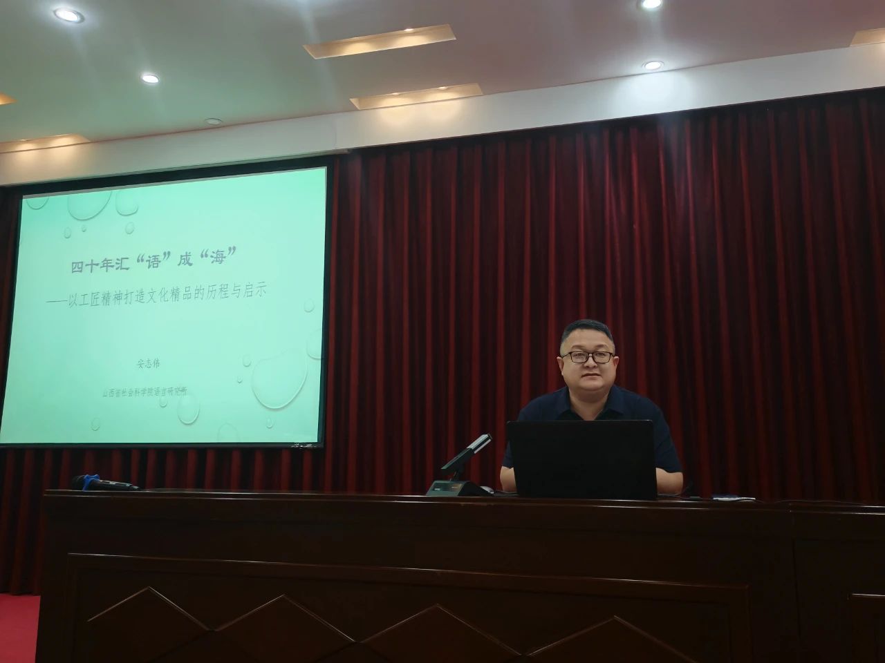 5月27日晚,语言文化学院特别邀请山西省社会科学院语言研究所所长安志伟,在知新楼西配楼报告厅作题为“四十年汇‘语’成‘海’——以工匠精神打造文化精品的历程与启示”的讲座,向师生们分享了国家级文化工程《语海》的编纂历程,生动阐释了新时代劳模精神和工匠精神。