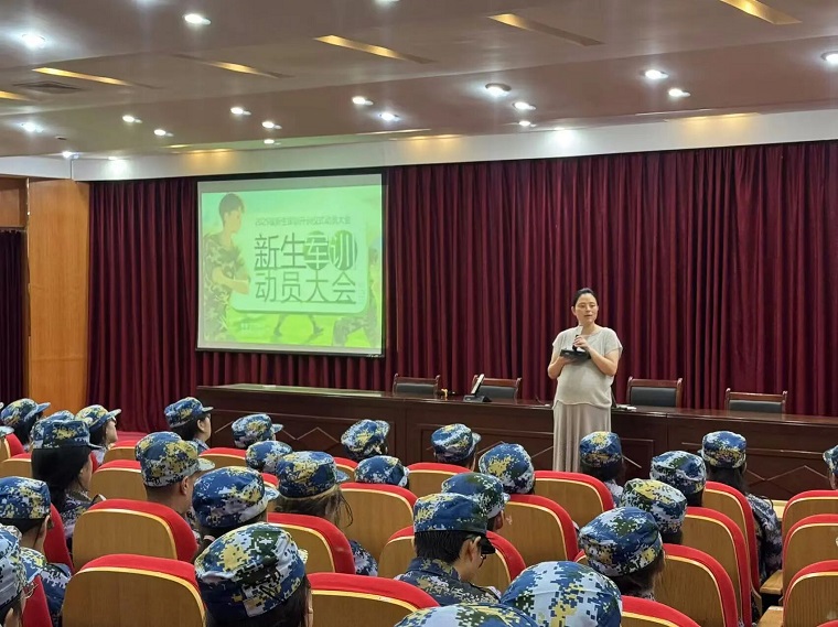 刘奕蔓院长发表了热情洋溢的讲话,为新生们加油鼓劲。刘院长表示,军训是大学生活的重要起点,是一次难得的成长机遇。通过军训,同学们将学会团结协作、锻炼坚韧不拔的意志,这些品质将伴随大家度过充实而有意义的大学生活。她希望同学们珍惜这次军训机会,把军训当作人生的一场修行,在训练中培养责任感和使命感,为未来的学习和生活打下坚实的基础。刘院长的话语充满力量,深深鼓舞了在场的每一位新生,现场掌声雷动。