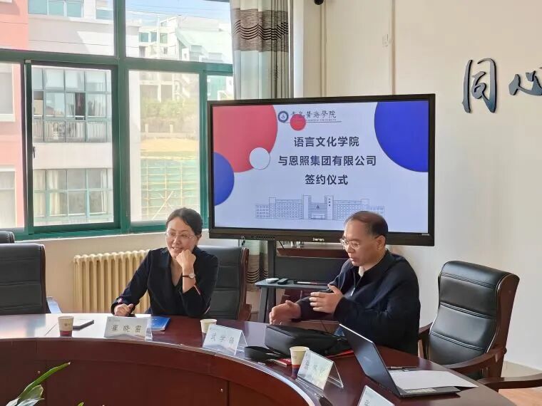 为创造更多学习实习平台,赋能学生实战经验积累和技能学习,在语言文化学院副院长武学峰教授的邀请下,4月16日,恩照集团COO赵玉华率队访问黄海学院。双方就共建课堂的具体内容和形式进行了深入交流,并签署了校企合作协议。