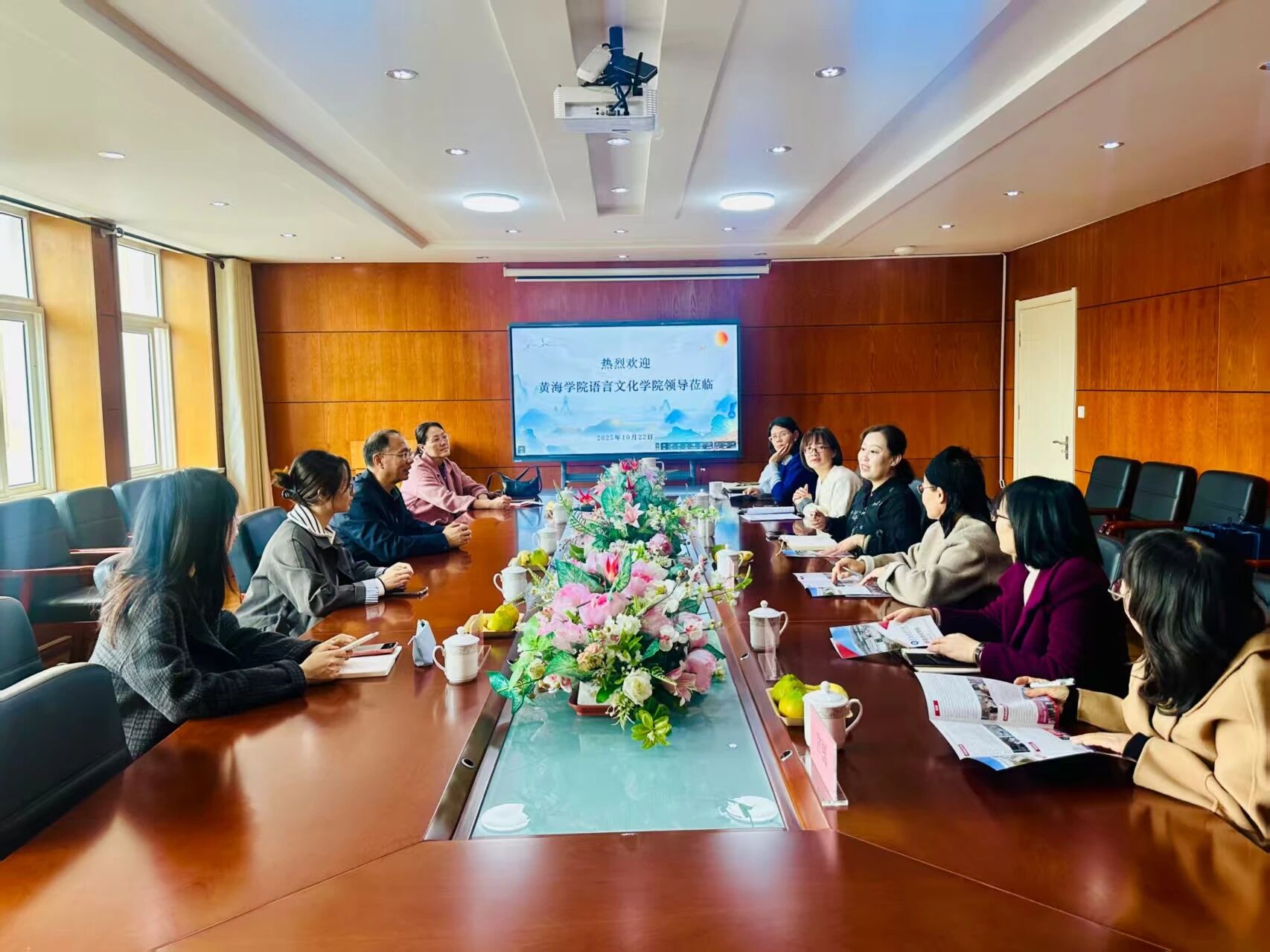 10月22日下午,语言文化学院副院长武学锋率团访问青岛滨海学院外国语与国际合作学院,聚焦国际化校园建设与专业发展等主题开展深度交流。访问团成员包括教学主任杨丽、英语系主任崔晓雷、大学英语教学部主任李明雪及日语系骨干教师马晓。青岛滨海学院外国语与国际合作学院院长佟若瑶率教学干事师文淑、日语本科教研室主任庄艳艳、大学英语教研室主任宫丽、英语系教授邢小艳等热情接待并参与交流。