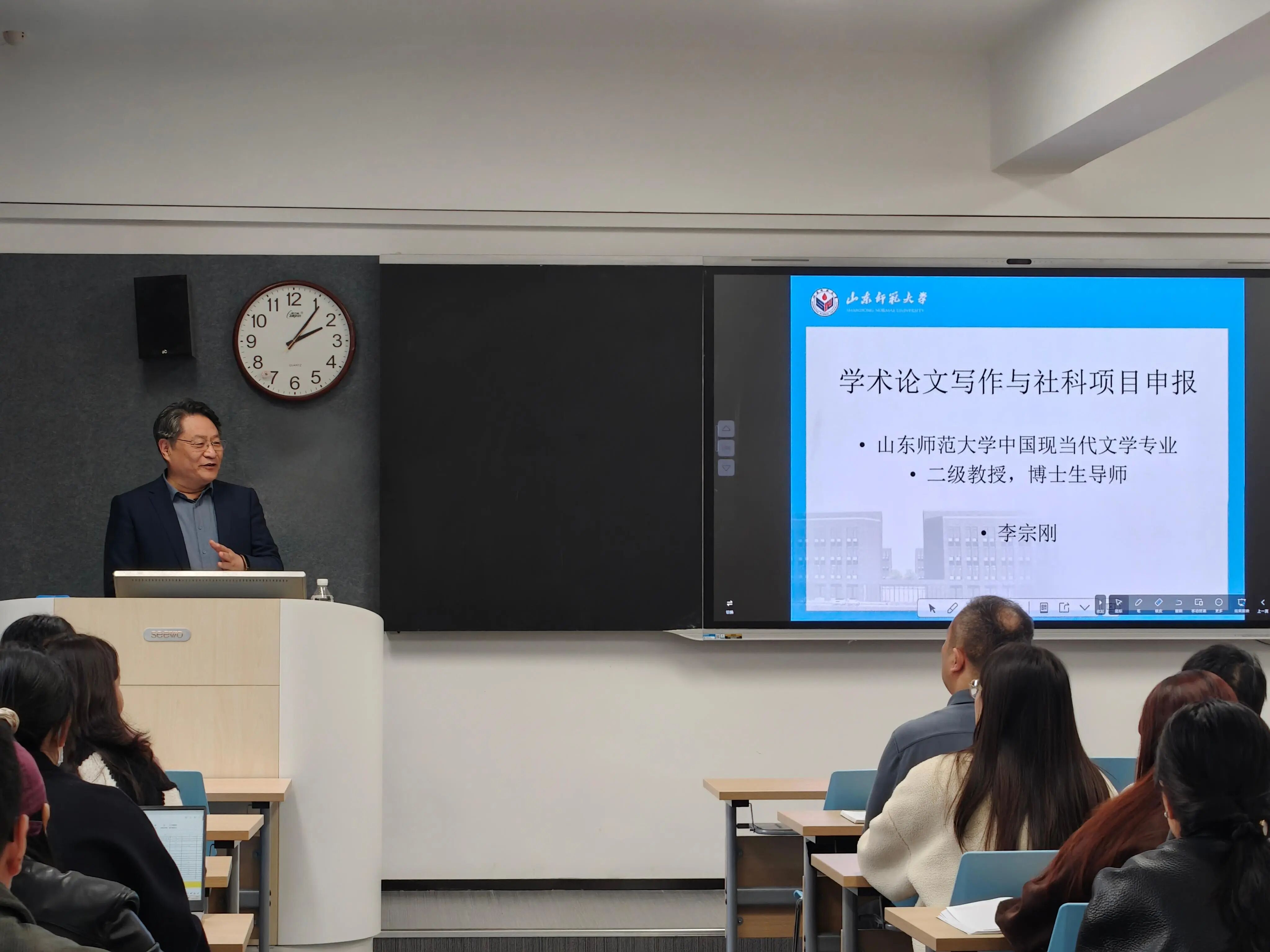 10月24日下午,山东师范大学李宗刚教授应邀来校作《学术论文的撰写与社科课题的申报》专题讲座,知新楼116教室座无虚席、掌声频传。本次活动是语言文化学院“名师讲堂”系列活动的重要环节,旨在提升教师科研能力、赋能学科发展。