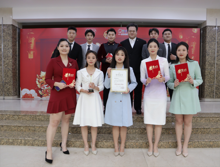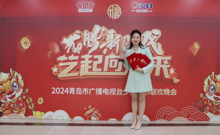 2024年1月22日,由青岛市广播电视台文创中心主办的“2024新青岛电视春节联欢晚会”暨“2023青岛市全民才艺大赛颁奖典礼”在青岛广播电视台明星大厅演播室录制。来自影视学院播音与主持系的集体朗诵节目《复兴颂》和独唱《海恋》成功登上2024新青岛电视春节联欢晚会,同学们的精彩表现受到现场观众的一致好评,播音与主持系的十位同学也是本届春晚中唯一的大学生团队。随着2024新青岛电视春节联欢晚会的成功录制,为期一年的2023青岛市全民才艺大赛也圆满收官。本年度才艺大赛,影视学院播音与主持系学子收获满满,2022级播音与主持专业的常焱哲、孙子珩、宁家爽、王宏韬、周桠凯、陈成璇、卢薇等九位同学带来的《复兴颂》获得最佳表演团队季军;2023级戏剧影视表演专业朱家绘同学的独唱《两地曲》获得最佳表演个人季军;另外播音系选报的朗诵节目《在中国大地上报道》、《吹号者》和独舞《小河淌水》分获优秀表演团队奖和优秀表演个人奖。本次颁奖典礼上,雷竞技的赛事积分荣获优秀组织单位奖。