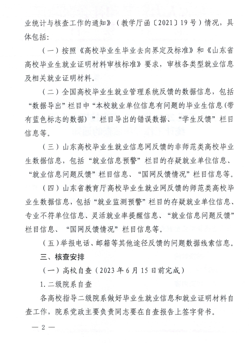 山东省人力资源和社会保障厅 山东省教育厅 关于开展 ⒛⒛ 届山东省高校毕业生就业 统计工作专项核查的通知