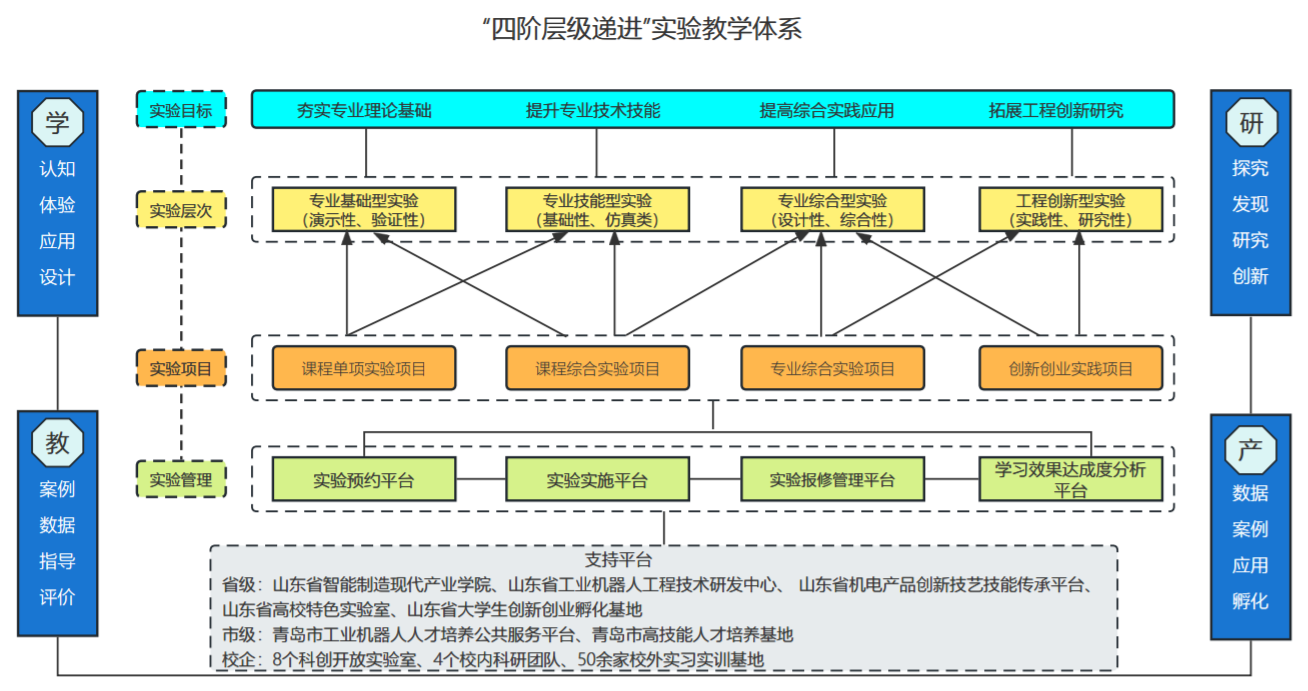 中心紧跟时代发展和企业需求,依托5个省级平台、2个市级平台、8个校内科创开放实验室及50余家校外实习实训基地,建立“学期小实践,学年大实践”的实践能力培养机制,以学生实践能力和创新能力培养为主线,紧紧围绕学生的知识、能力、素质教育,全面推进课程体系和实验教学内容改革,改革实验教学方法与手段,通过基础型实验、技能型实验、综合型实验和工程创新型实验四个层级的训练,突出个性能力发挥,把基础知识和基本技能、科学思维、创新能力贯穿于实验教学的整个过程,以实验实践带动专业技能竞赛,突出教学过程的实践性及应用性。