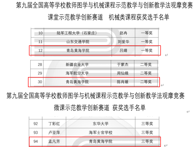 近日,由中国图学学会制图技术专业委员会等单位主办的第九届“高教杯”全国高等学校教师图学与机械课程示范教学与创新教学法观摩竞赛在山东交通学院顺利举行。大赛吸引了来自全国130多所高校,300余名教师参加。我校吕婧教师荣获机械赛道一等奖,陈肖媛教师荣获机械赛道二等奖,孟凡芳教师荣获微课赛道三等奖。