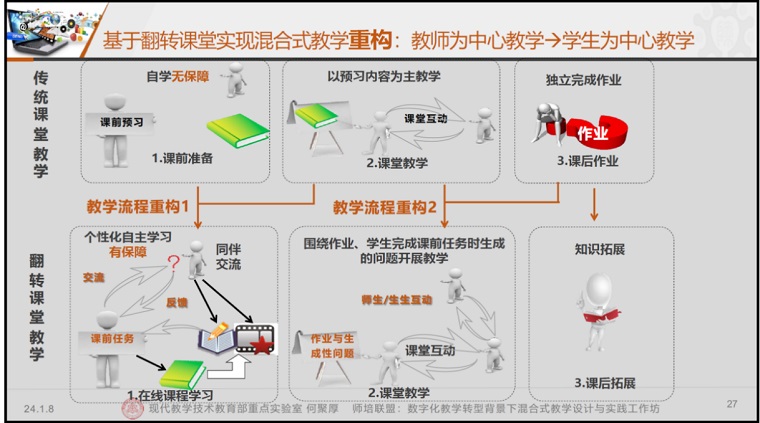 孙维丽主任对数字化转型的背景进行了全面介绍。她指出,根据国务院于2022年1月印发的《“十四五”数字经济发展规划》,深入推进智慧教育已成为国家战略,全国教育工作会议也明确将教育数字化转型作为教育教学改革的核心。因此,我们未来的教育教学工作必须向数字化、智能化方向转型,以适应时代发展的需求。吕婧老师分享了她参加华教国培教育学研究院主办的《数字化教学转型背景下项目驱动双主线混合式教学设计与实践实战工作坊》的培训心得,培训中以C语言课程为例,从数字化转型方式和混合式教学设计两个维度进行了深入探讨。强调教学工作必须从传统的以教师为中心转变为以学生为中心,以更好地满足学生的个性化学习需求。她提出,数智化教学应注重信息的追踪与反馈,以实现教学的个性化和精准化。