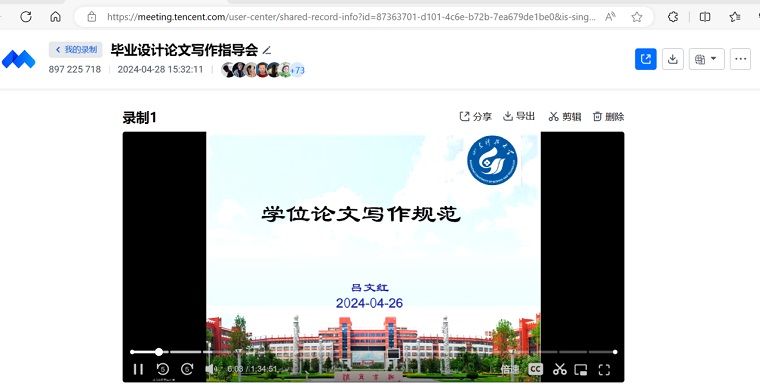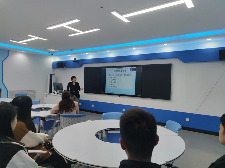 随后,吕文红教授通过大量实际案例和国家标准从学位论文分类、结构以及各部分写作要点三方面展开描述。其中对学位论文的摘要、引言、正文、结论与展望、致谢等各环节进行了详细指导,并对论文排版布局、字符规则、图表、参考文献引用及著录规范等方面提出了具体要求,强调所有环节都有国家标准,需要严格遵守。并把现阶段的论文修改比作“化妆”一样,经过精心修改以良好的形象呈现在答辩组老师面前。