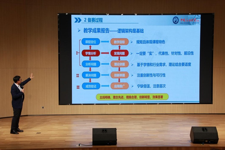 针对全国高校教师教学创新大赛,张宗波教授从政策解读、备赛过程和参赛感悟等几个方面进行了深入浅出的剖析。张教授强调参赛教师需精准把握从校赛到省赛,再到国赛的每个时间节点,注重教学成果的展示与逻辑架构的构建。针对教学成果报告,张教授强调逻辑架构是教学创新成果报告的基础,从学情分析引出痛点,凝练痛点,解决痛点,务实举措。痛点的凝练要实、有代表性、针对性、前沿性,而解决痛点的策略则需创新、务实、可行,展现教学的细节。