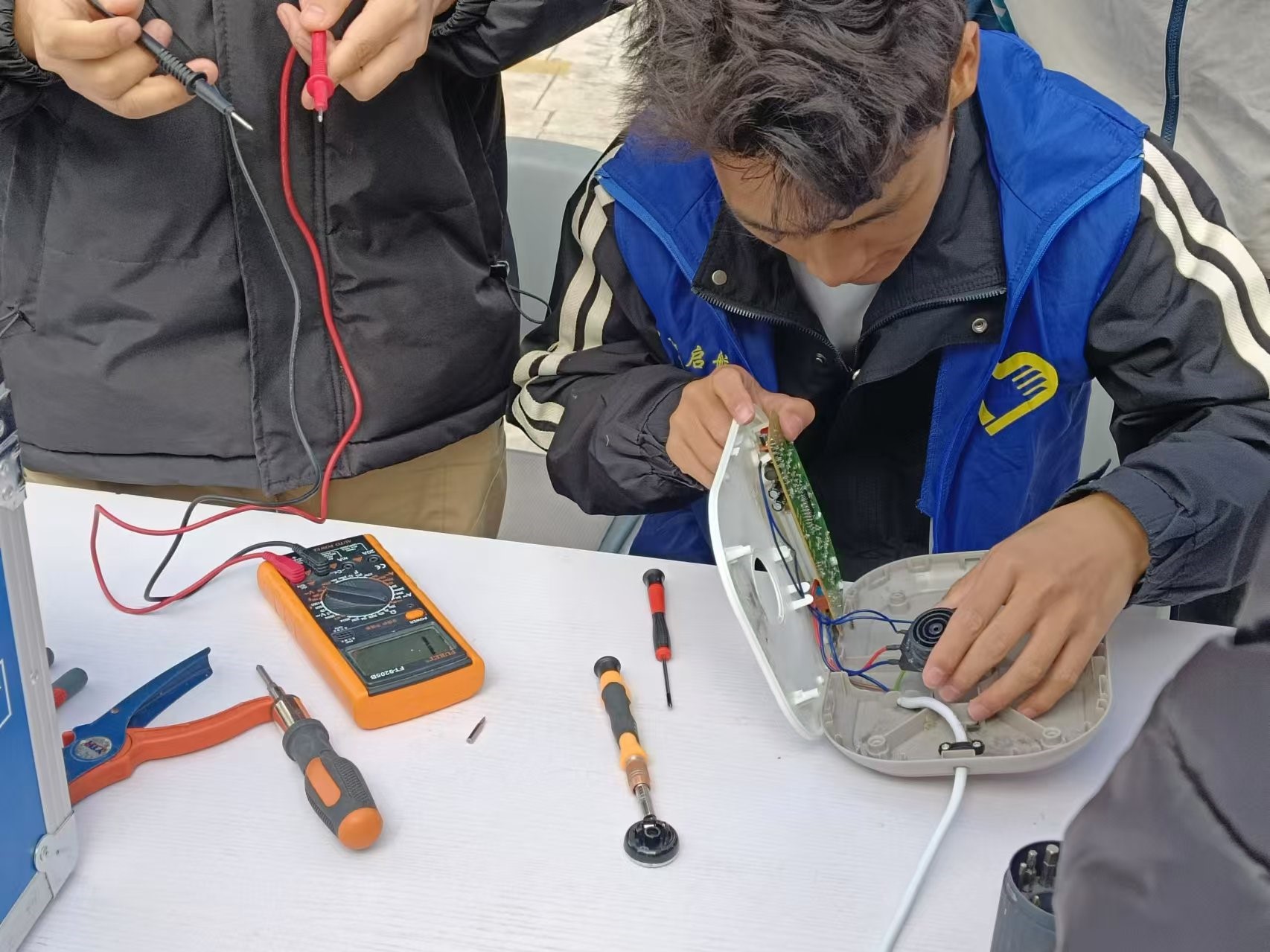 维修小家电服务是此次活动的亮点之一。志愿者们利用自己的专业技能,为社区居民免费维修了电饭煲、电热水壶、风扇等家用电器,解决了居民的实际问题,同时也推广了节约资源和环保的理念。