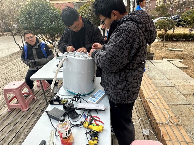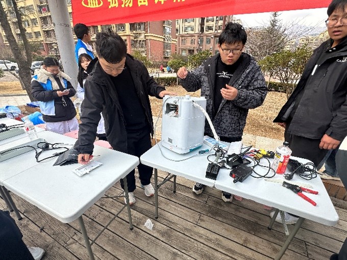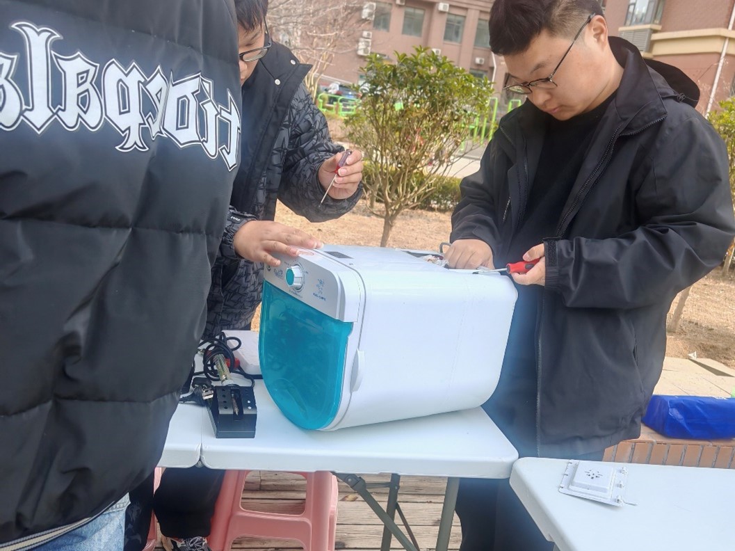 活动刚一开始,居民们就纷纷带着损坏的小家电赶来。志愿者们迅速行动起来,热情接待每一位居民,仔细询问电器故障情况,随后便全身心投入检测维修工作。一位大爷拿着不能加热的电水壶匆匆走来。志愿者们赶忙迎上去,熟练打开外壳,用万用表仔细检测电路,很快便发现是加热丝烧断。他迅速更换加热丝,通电测试,电水壶重新正常工作。大爷紧皱的眉头瞬间舒展开,脸上满是满意的笑容,不住地道谢。