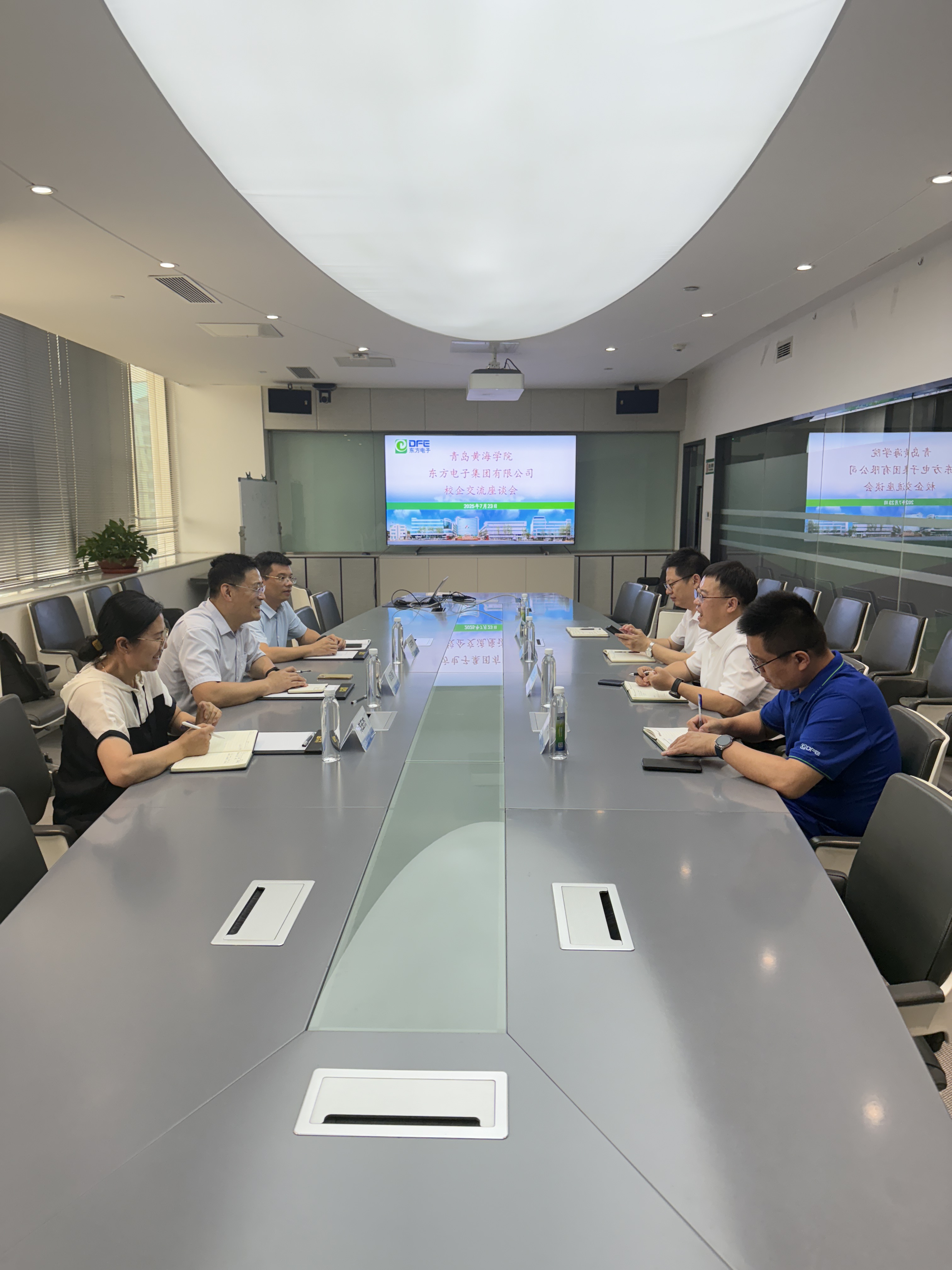 2025年7月23日,青岛黄海学院副校长刘纪新、智能制造学院常务副院长陈玉杰、车辆工程系主任王可栋一同前往东方电子集团,针对双方校企合作、双聘双跨工作开展首次互访交流活动。
