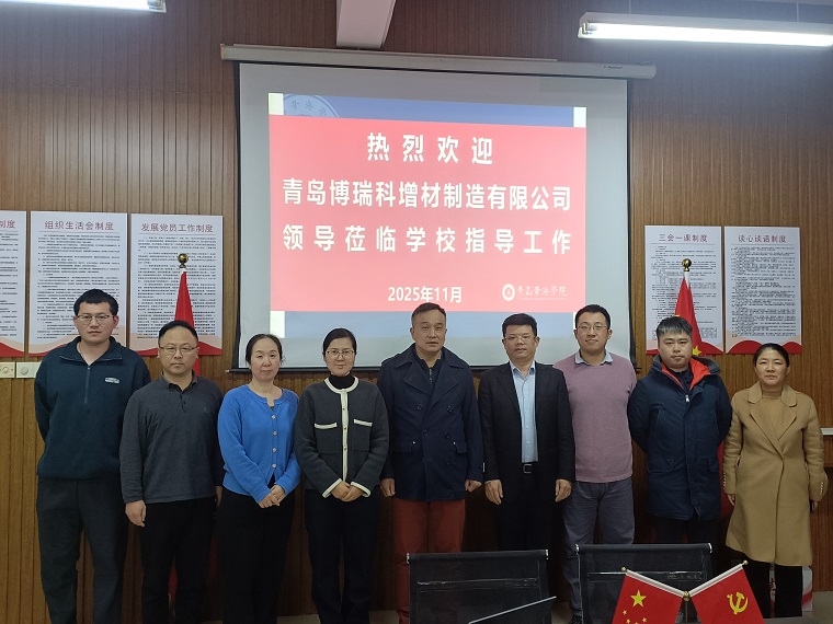 11月17日,青岛博瑞科增材制造有限公司总经理周晓宾率领公司核心技术团队莅临我校,开展深度交流与合作。智能制造学院常务副院长陈玉杰、院长助理王可栋、机械工程系主任孙维丽、电气工程系主任陈会伟、智能制造产业学院中心主任宋爱利等共同接待并参与交流。双方通过实地考察与技术研讨,正式开启了在增材制造领域的人才联合培养、科研协同创新及产业成果转化等多方面合作,为推进“教育链—人才链—产业链—创新链”深度融合注入新动力。