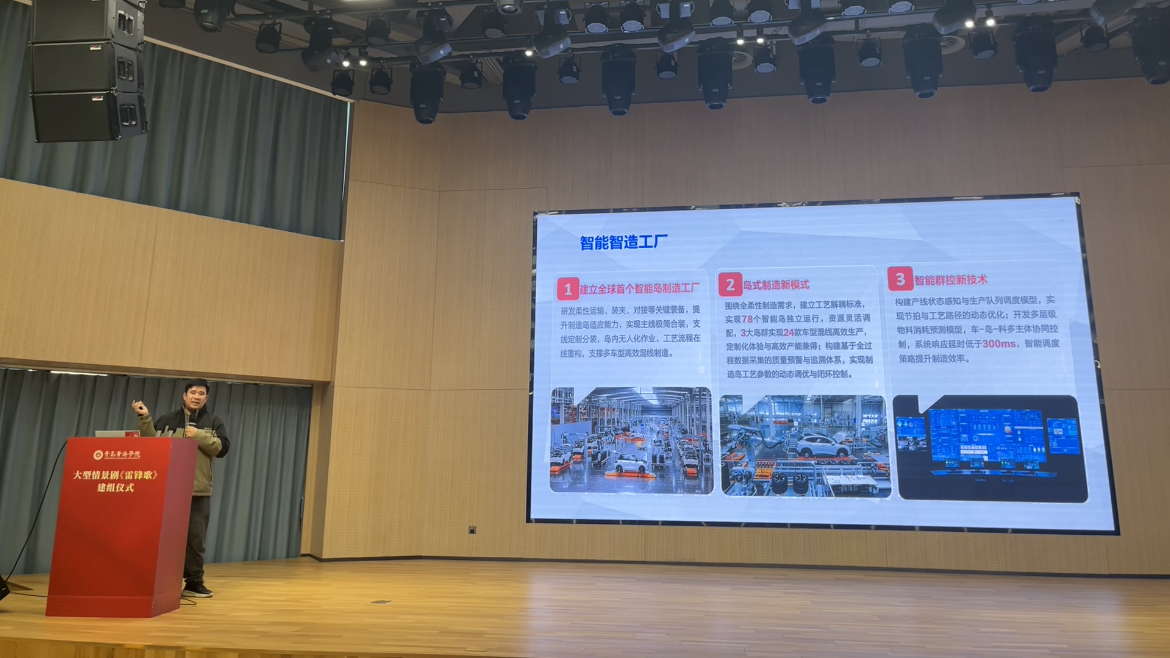 此次报告会上,苗工以上汽通用五菱全球首创智能岛制造体系(I2MS)为核心案例,深度解析“工艺可解耦、产线可重构、产能自适应、数据可增值、系统可进化、模式可拓展”六大创新,彻底颠覆百年传统流水线生产方式。苗工为师生们生动讲解了数据驱动与全局优化如何重塑现代生产范式,无人车间的精准操作到数据平台的智能调度,让大家清晰看到了传统制造业向智能化、数字化转型的路径与前景,更感受到了我国在智能制造领域的坚实实力与蓬勃活力,在新一轮科技革命和产业变革加速演进的今天,智能制造已不再是遥远的概念,而是贯穿生产全链条、引领产业升级的核心力量。