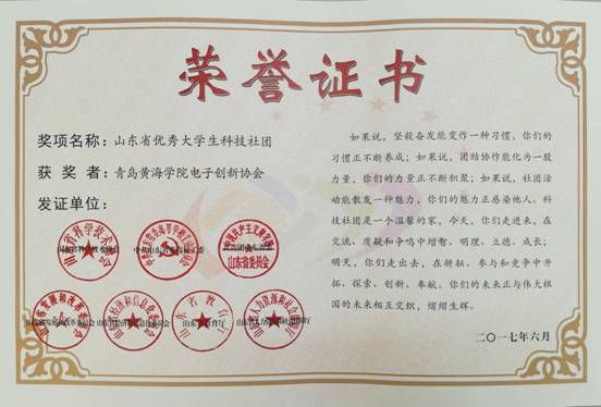 依托于机器人创新工作室的“电子创新协会”在2013、2014、2017年连续三年被评为“山东省大学生优秀科技社团”,团队成员多次获得省级优秀学生、优秀毕业生、国家奖学金和国家励志奖学金,在大学生科技创新和创业活动中起到模范带头作用。