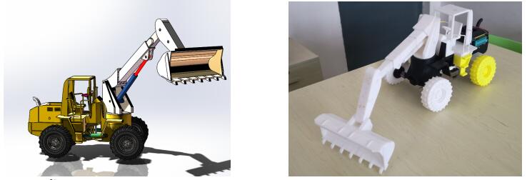本模型介绍了一种多功用的铰接装载机,着重设计智能机械臂的多功用和液压智能换向。具有柔性关节的铰接式装载机能适应不同的地形,与传统的装载机械相比具有较好的攀援能力。能在平地时快速前进,且换向时占更少空间,因此换向快捷、方便。对机械臂进行受力检测研究了该系统的可靠性与安全性问题。同时前端工作区域可以自由更换。该设备以一机多用为设计核心,可装备铲斗,抓手,叉子,除草机等功能端头。